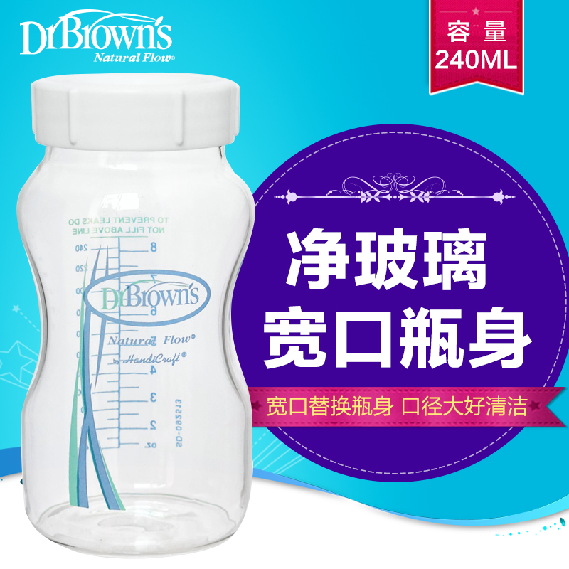 布朗博士 8安士/240ml净玻璃宽口瓶身(送防漏盖)No.469