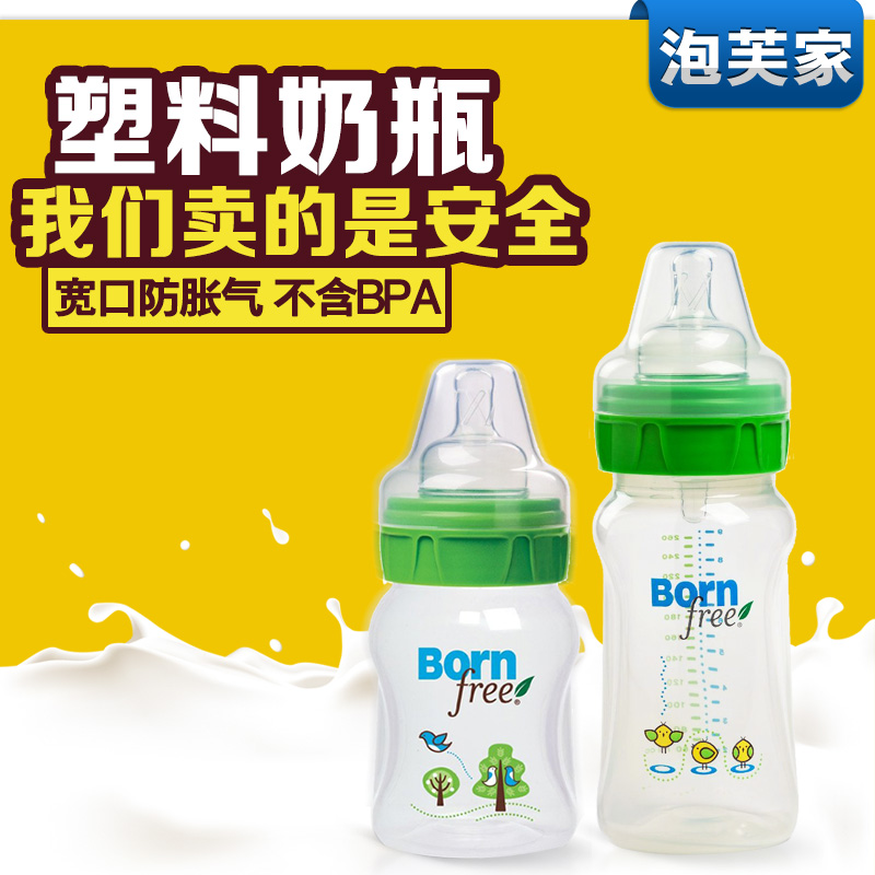 美国直邮 BornFree 经典系列宽口防胀气婴儿塑料奶瓶 160/260ML