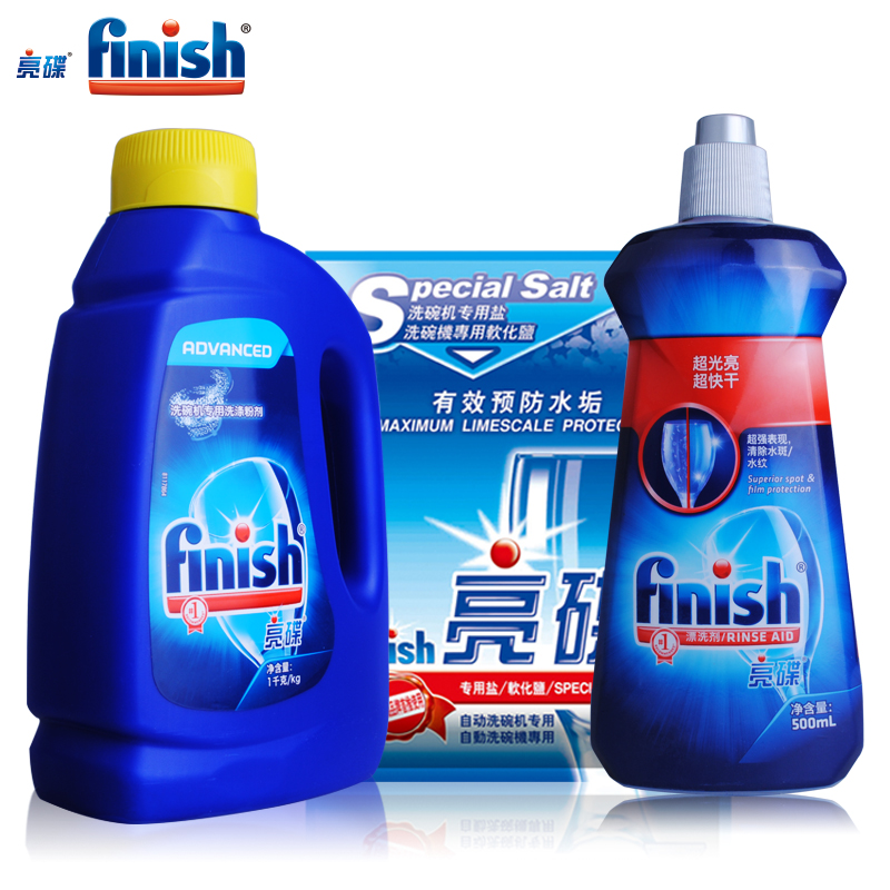 亮碟finish洗碗机专用洗涤剂洗涤粉+专用盐+漂洗剂套装西门子