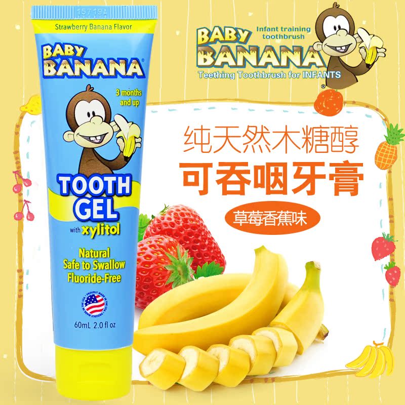 美国Baby Banana香蕉宝宝纯天然木糖醇可吞咽护齿牙膏草莓香蕉味