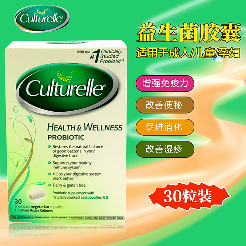 美国Culturelle 成人儿童 孕妇 LGG益生菌胶囊30粒调理肠胃便秘