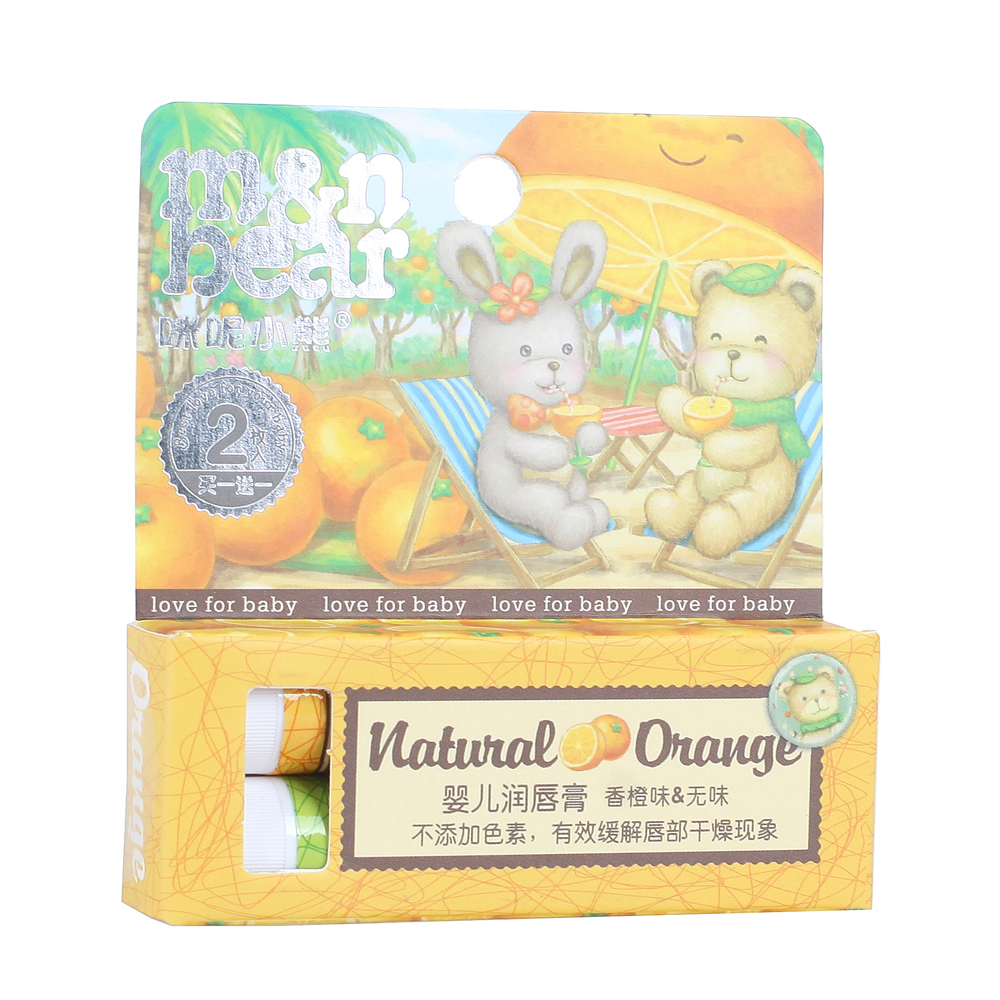 咪呢小熊 婴儿润唇膏2支装 水润柳橙送无味装 宝宝滋润护唇膏