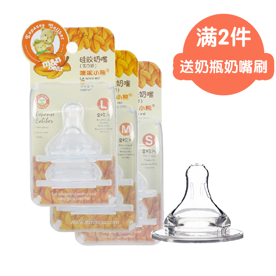 咪呢小熊宽口径硅胶奶嘴2个装婴幼新生儿仿真圆孔/十字孔奶嘴