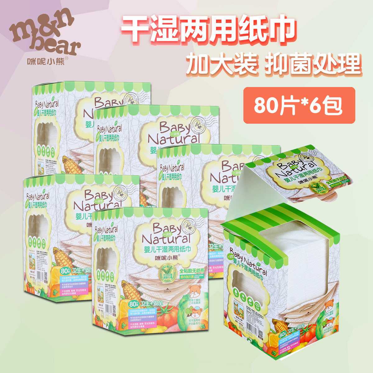 咪呢小熊 婴儿干湿两用纸巾80片*6包 抑菌安全卫生棉柔无纺布