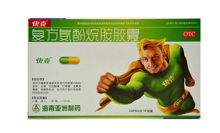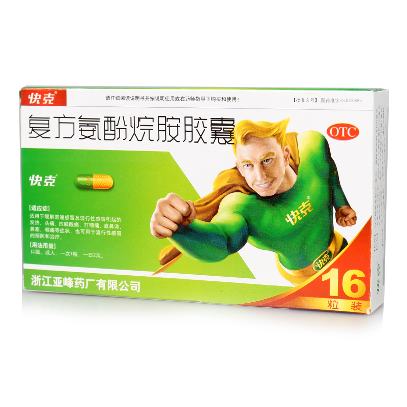 > 【包邮】快克 复方氨酚烷胺胶囊 16粒 普通感冒 流感 发热头痛