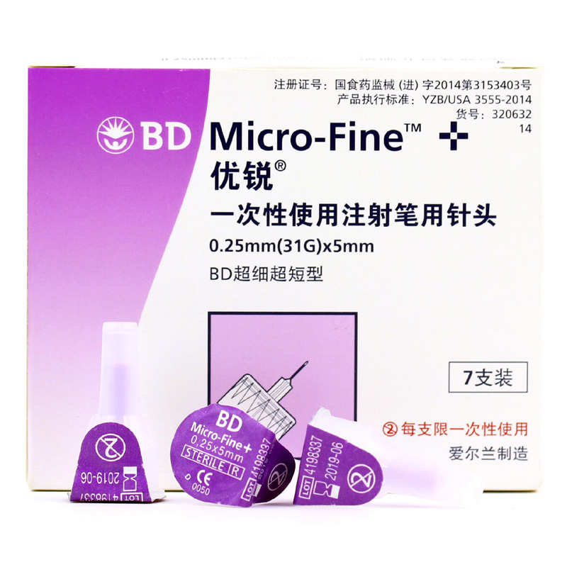优锐BD 7支装0.25*5mm无菌一次性胰岛素注射笔针头进口适用诺和笔