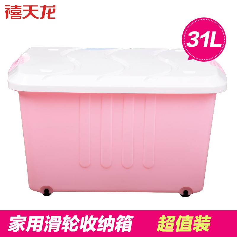 禧天龙58L大号树脂整理箱滑轮收纳箱储物箱 粉红色