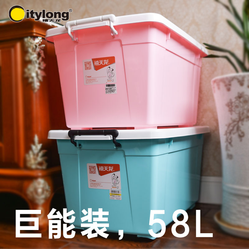【天猫超市】禧天龙58L加厚轮滑衣物塑料收纳整理箱6075随机色