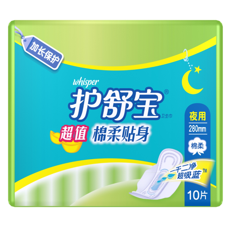 【天猫超市】护舒宝卫生巾超值棉柔贴身夜用加长保护280mm10片