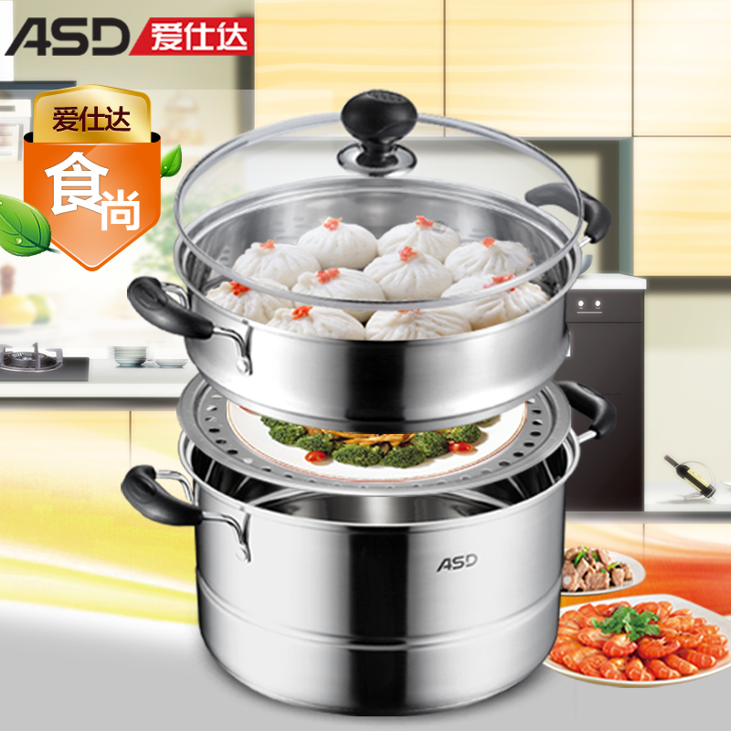 【天猫超市】爱仕达蒸锅26cm不锈钢复底二层2层QVL1526电磁炉适用