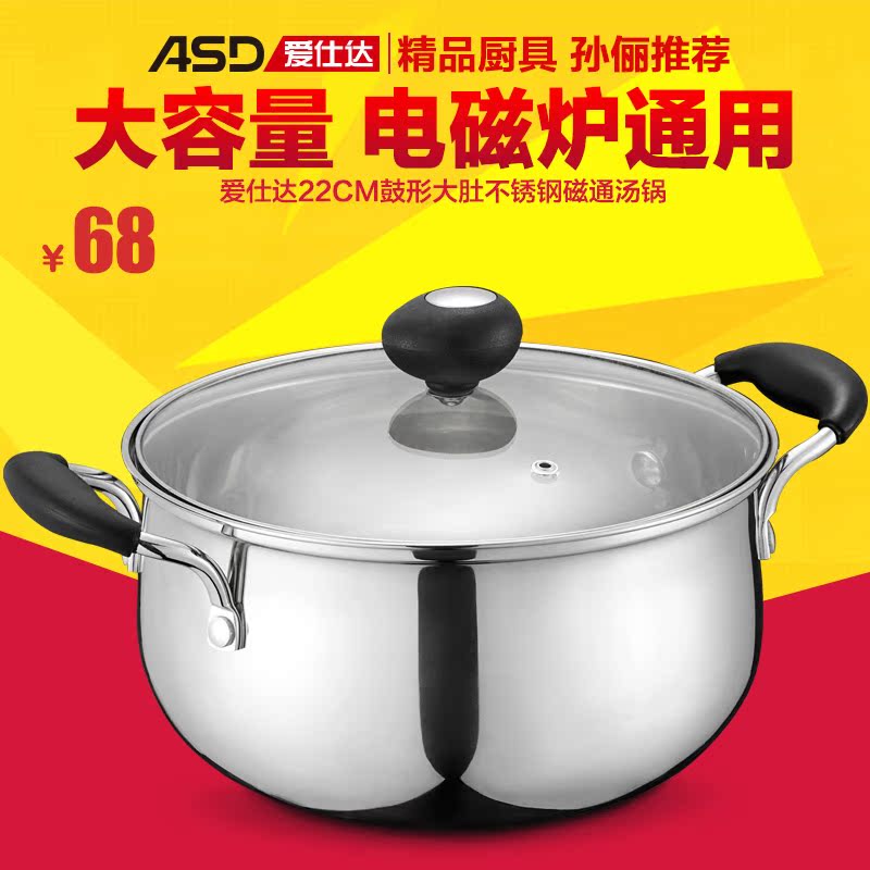 爱仕达不锈钢汤锅 复底锅具 22cm大容量汤锅 电磁炉通用C1722