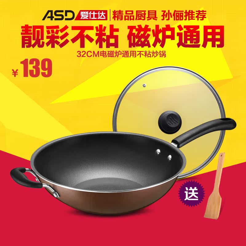 爱仕达(ASD)32CM电磁炉通用不粘炒锅EC8332E炒菜少烟新不沾