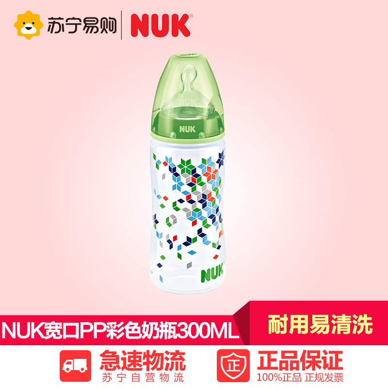 【苏宁易购】NUK新型宽口PP彩色奶瓶300ML(带1号硅胶宽口奶嘴)