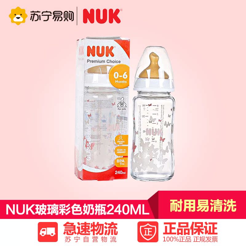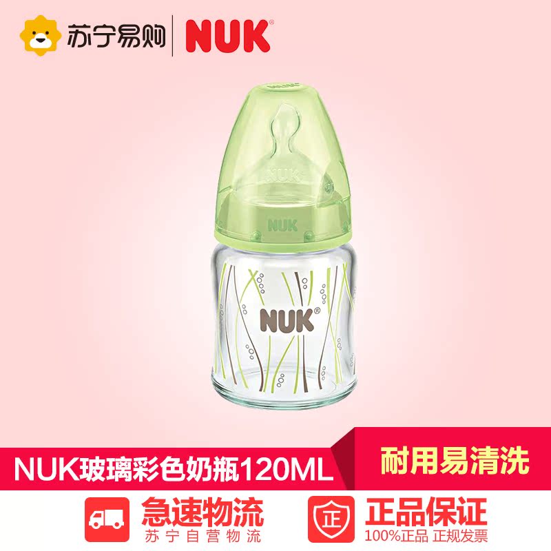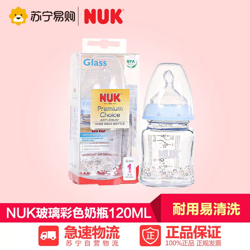 【苏宁易购】NUK宽口耐高温玻璃奶瓶120ML(带1号乳胶中圆孔奶嘴)