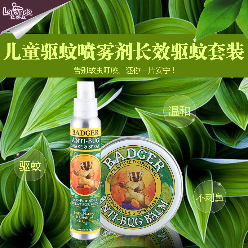 美国Badger 宝宝驱蚊膏 婴儿驱蚊液 儿童驱蚊喷雾剂长效驱蚊套装