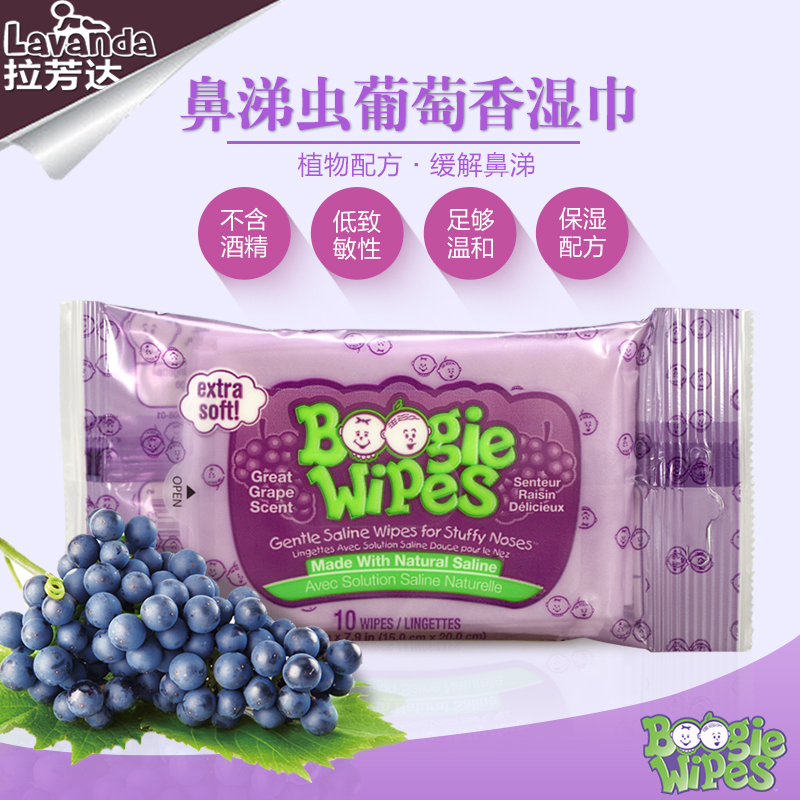 > 美国Boogie Wipes宝宝好孩子感冒消毒湿纸巾葡萄味婴儿童手口湿巾