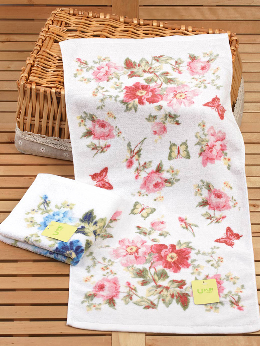 UCHINO|粉色蓝色韩式两色面巾两条装