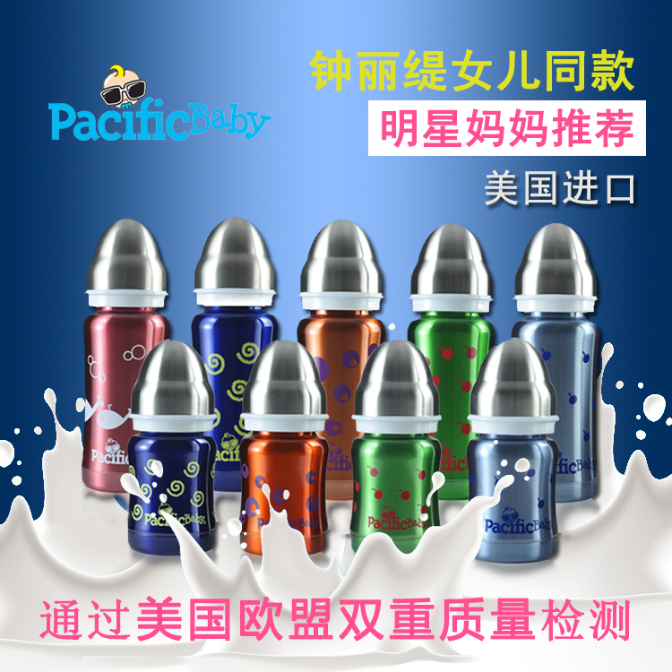 pacific baby太平洋宝贝美国进口儿童不锈钢保温奶瓶婴儿防摔两用