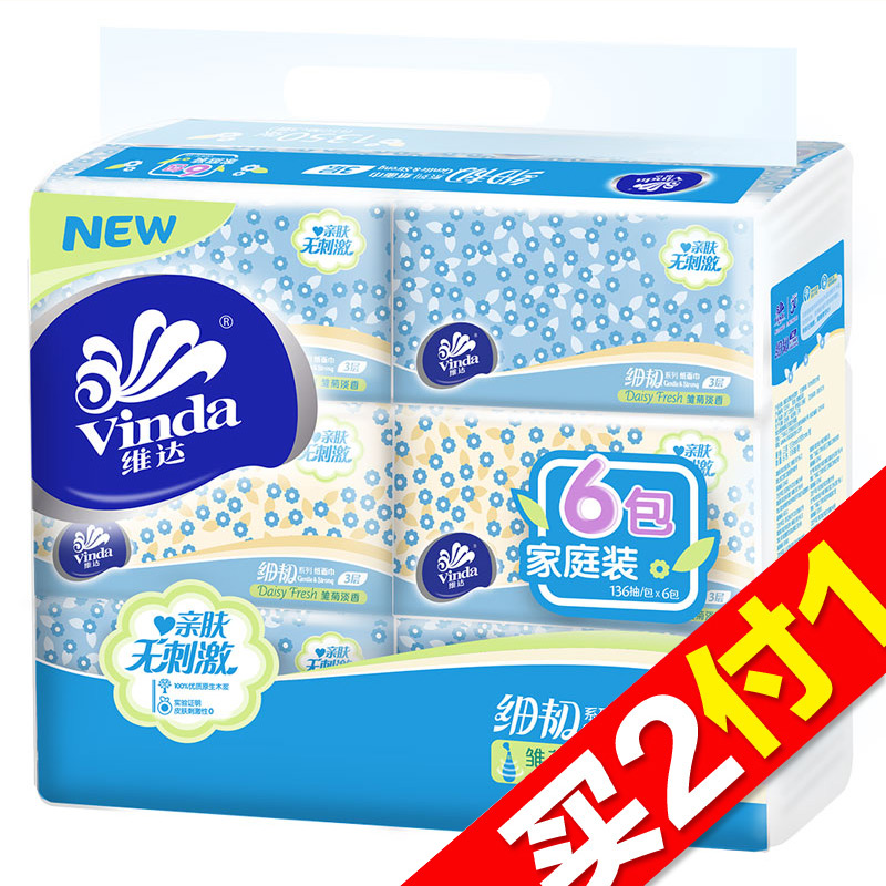 【天猫超市】维达细韧系列软包抽纸3层136抽6包133mm*195mm纸巾