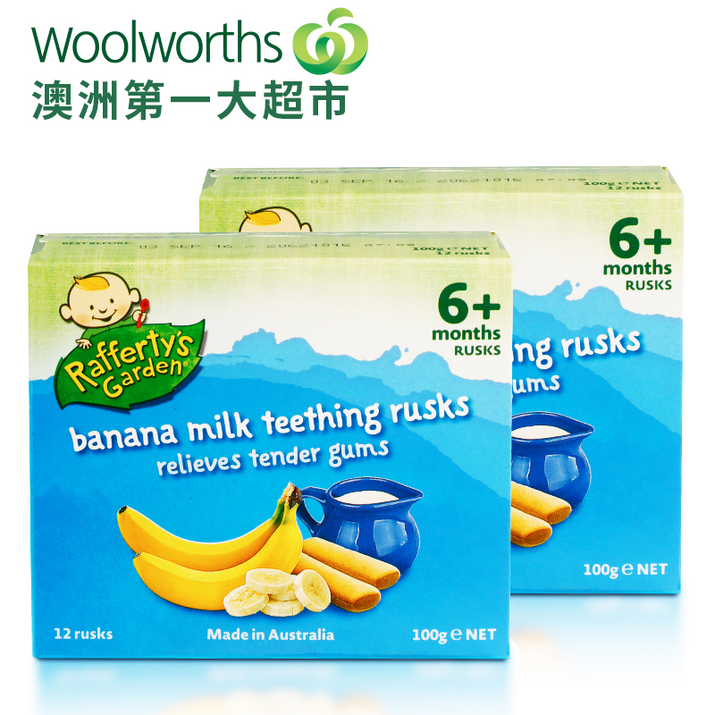 澳洲原装进口 Rafftertys香蕉牛奶面包干100克磨牙棒宝宝婴儿饼干