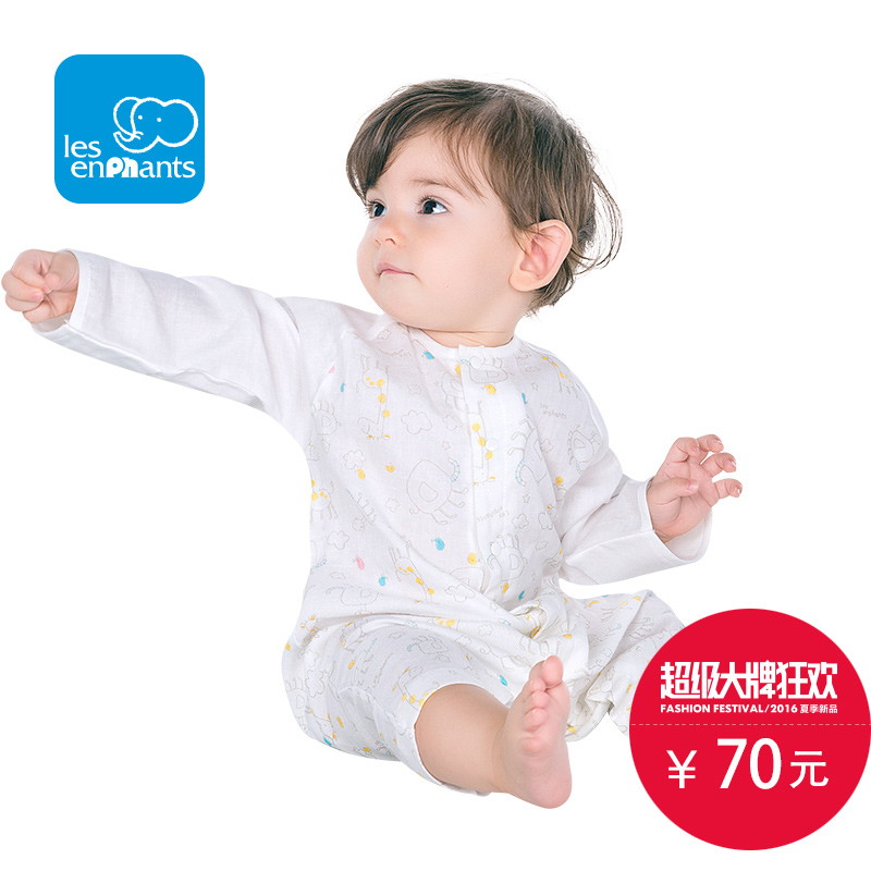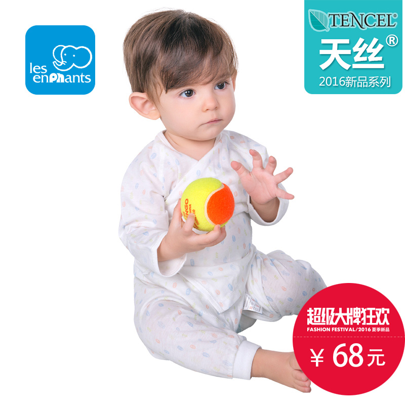 丽婴房婴儿衣服儿童纯棉纱布内衣套装短袖斜开扣内衣套装2016夏新
