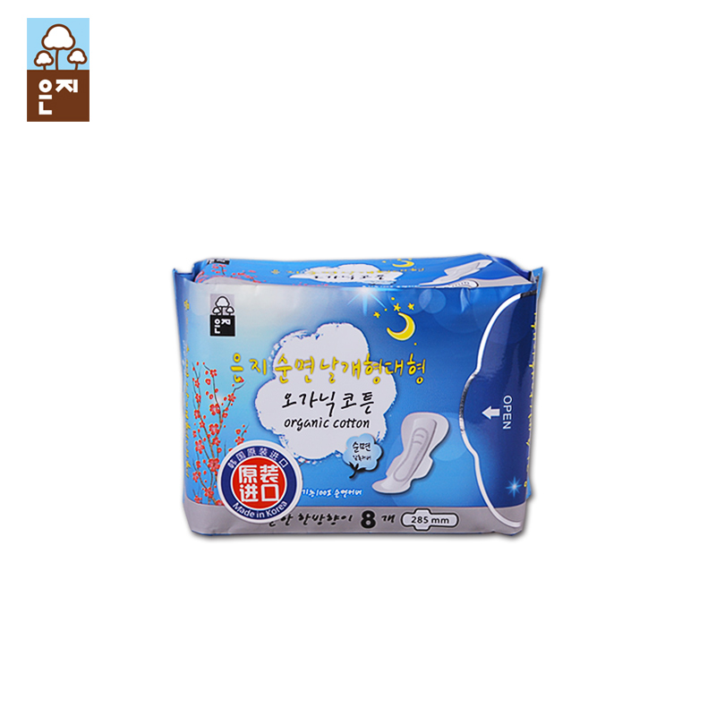 韩国恩芝超薄夜用卫生巾进口285mm8片有护翼