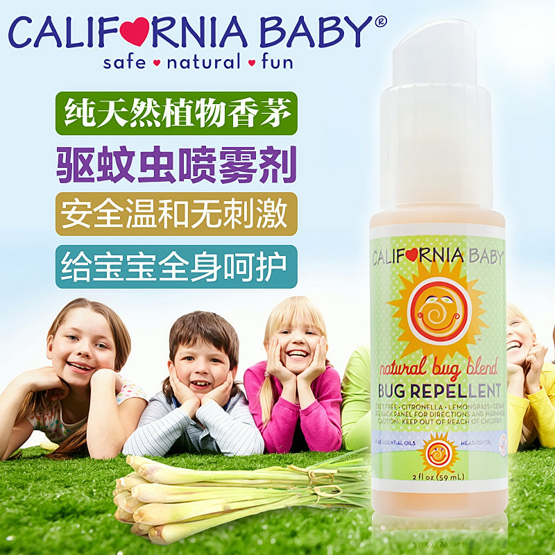 美国california baby加州宝宝驱蚊液防蚊液香茅驱蚊虫喷雾59ML*2