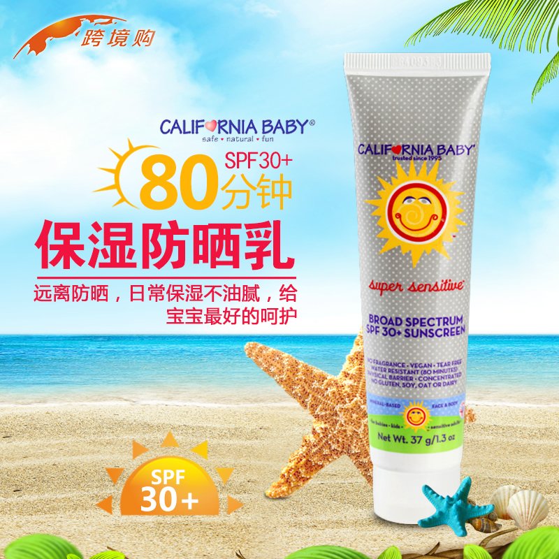 美国正品 加州宝宝日常防晒霜-保湿SPF30 天然物理防晒 82g