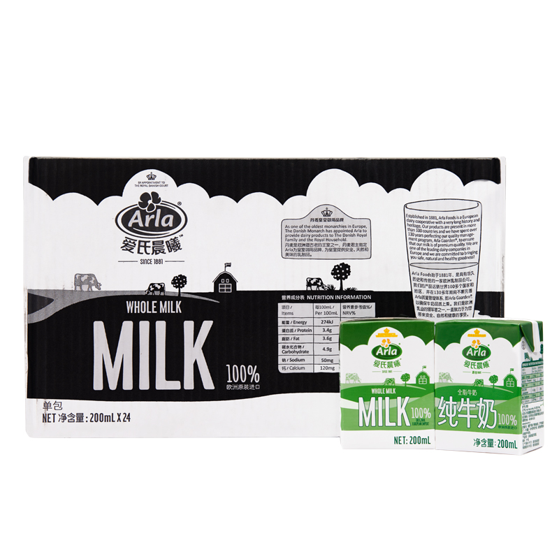 > 【天猫超市】 德国原装进口 Arla爱氏晨曦全脂纯牛奶200ml×24盒