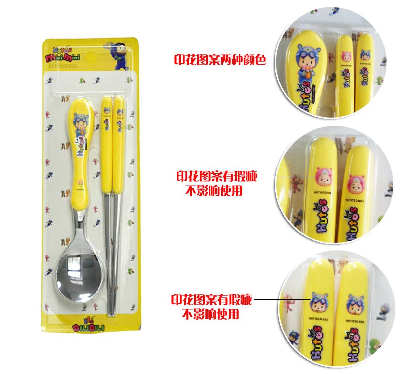 韩国进口正品HUTOS不锈钢儿童餐具勺子筷子套装样品包邮