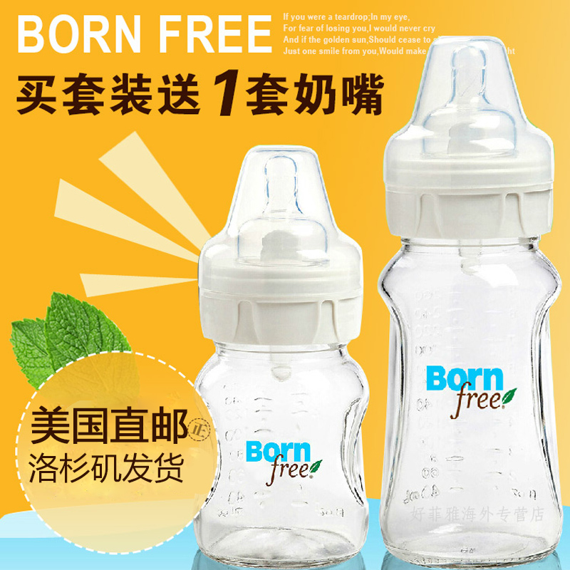 美国直邮Bornfree新生儿婴儿防胀气宽口玻璃奶瓶 不含双酚A