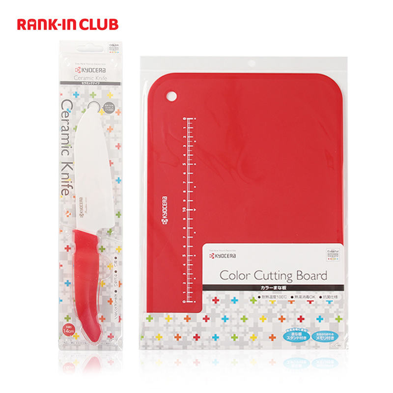 包日本EMS直邮 Kyocera/京瓷炫彩精密陶瓷菜刀水果刀+砧板 红色