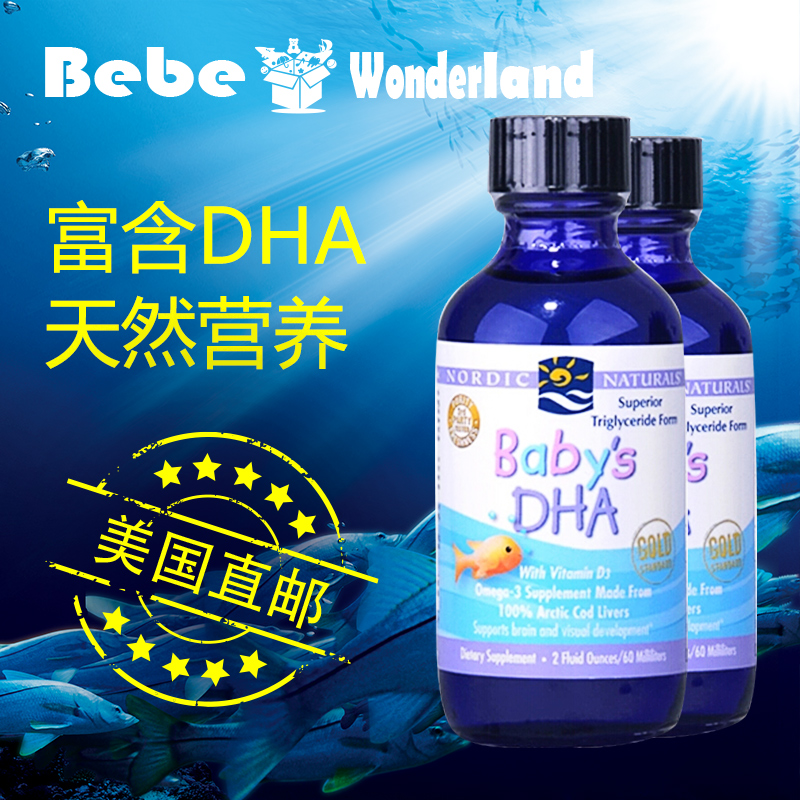 挪威小鱼Nordic Naturals幼儿鳕鱼DHA滴剂婴儿鱼油美国进口鱼肝油