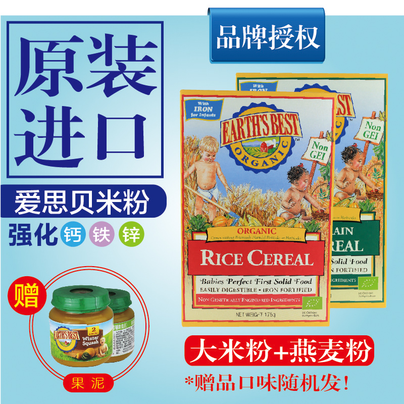 > Earths best宝宝米粉爱思贝婴幼儿辅食强化钙铁锌有机小麦米粉