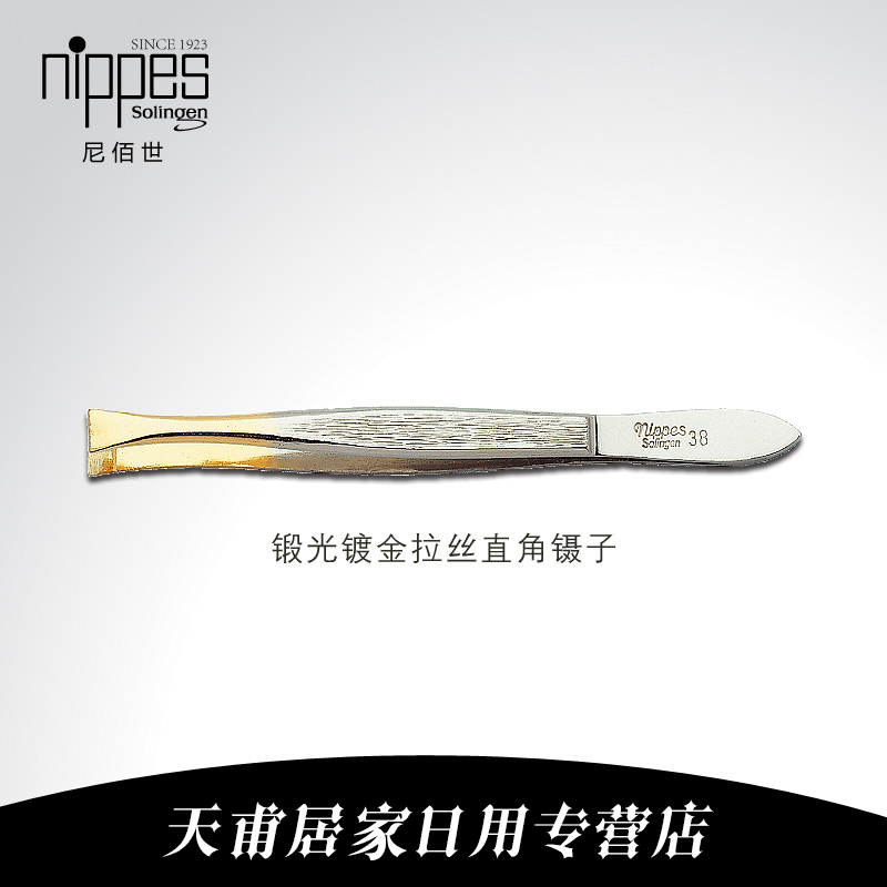 Nippes/尼佰世38SGP缎光镀金拉丝直角镊子德国进口修眉去毛器防滑