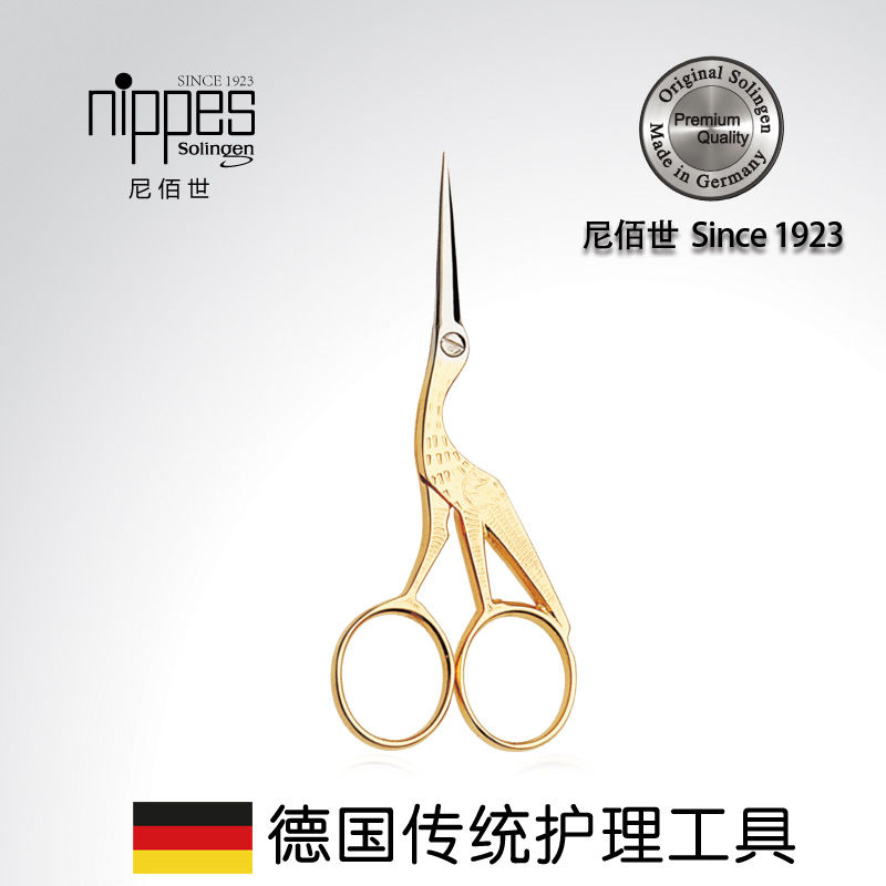 Nippes/尼佰世466缎光镀金鹤型剪刀德国进口手工不锈钢裁缝剪子