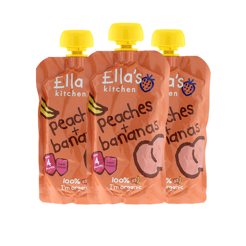 英国Ella's Kitchen 艾拉厨房桃子香蕉婴儿混合果泥120g*3袋装