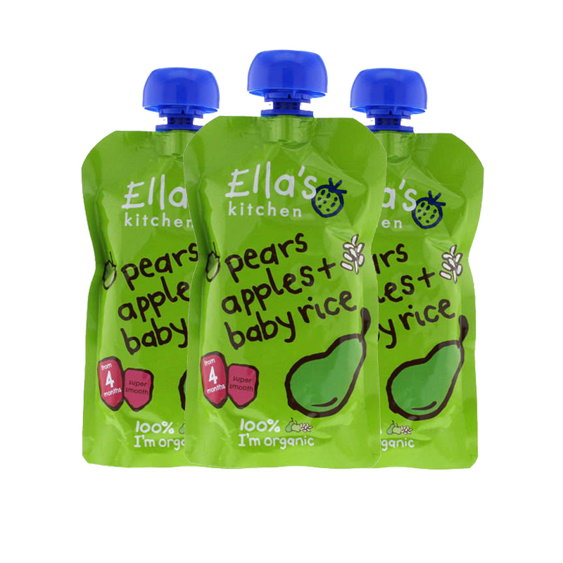 英国 Ella's Kitchen 艾拉厨房梨子苹果婴儿米粉泥120g*3袋装