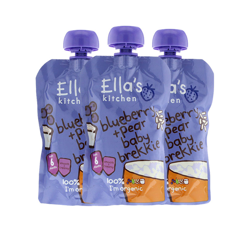 英国Ella's Kitchen 艾拉厨房婴儿早餐蓝莓酸奶米粉泥100g*3袋装