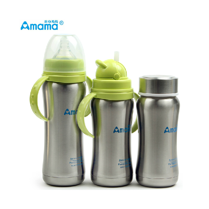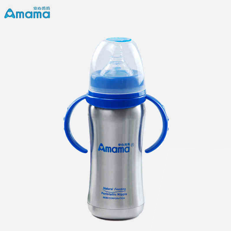 安心妈妈 不锈钢保温奶瓶宽口径 带吸管手柄