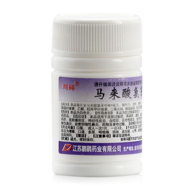 鹏鹞 100片 马来酸氯苯那敏片荨麻疹湿疹药疹皮肤瘙痒神经性皮炎