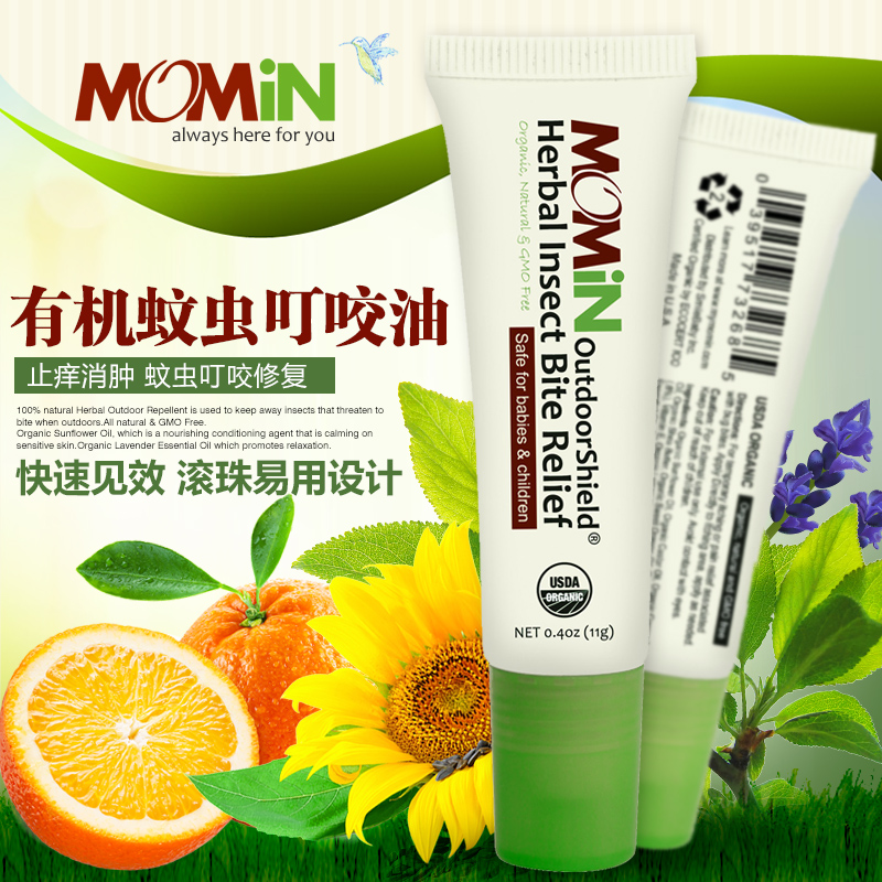 美国直邮MOMIN有机婴儿草本蚊虫叮咬油 止痒消肿驱蚊 带滚珠11g
