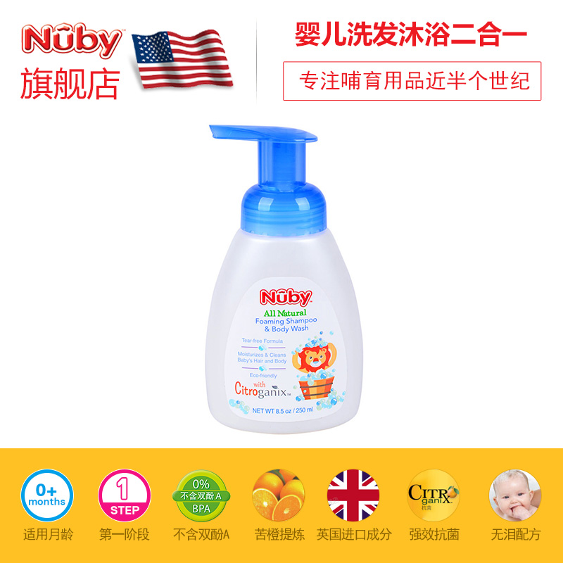 美国nuby/努比洗发沐浴乳婴儿二合一沐浴露新品橘子宝宝系列250ml