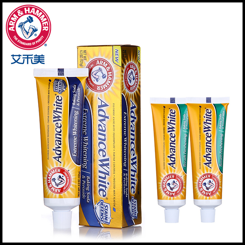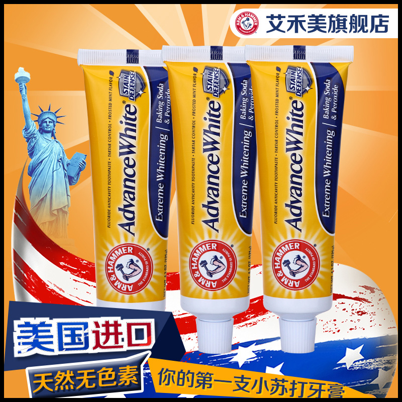 艾禾美亮白洁净牙膏美白去渍烟牙去黄牙结石去口臭小苏打进口美国