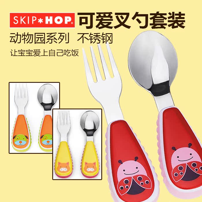 美国SKIP HOP可爱动物园不锈钢叉勺套装宝宝餐具套装不含BPA
