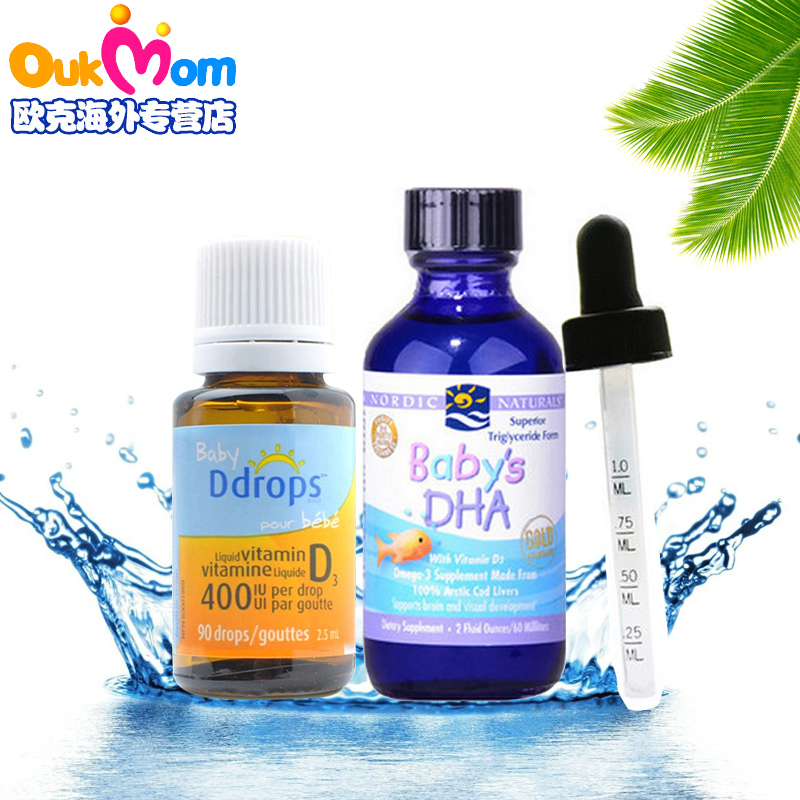 美国挪威婴儿DHA鱼油滴剂60ml 婴儿baby Ddrops 补钙滴剂90滴混合