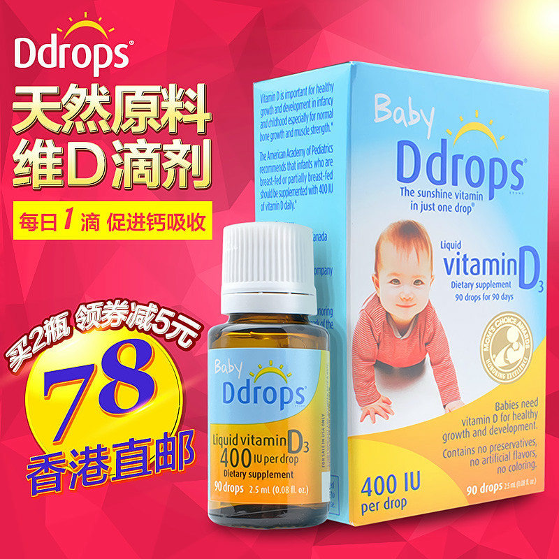 加拿大Ddrops 婴儿维生素d3VD宝宝促进钙质吸收滴剂2.5ml防佝偻病