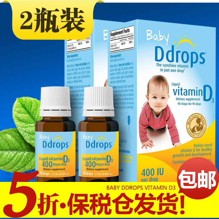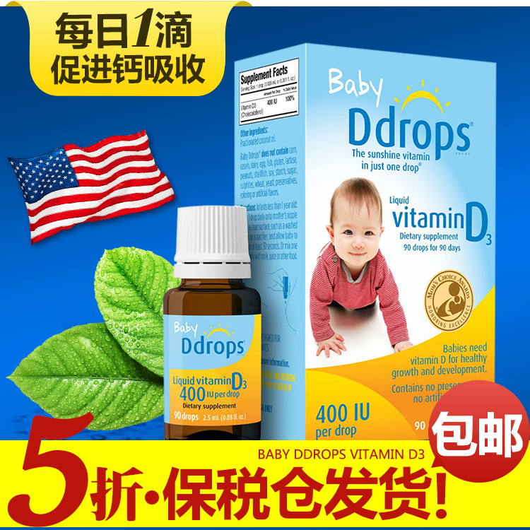 美国进口 Baby Ddrops婴儿维生素D3宝宝儿童补钙滴剂90滴包邮