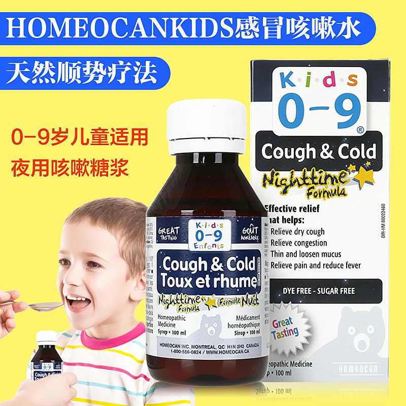 加拿大Homeocan儿童婴儿感冒咳嗽水止咳天然顺势疗法夜用100ml