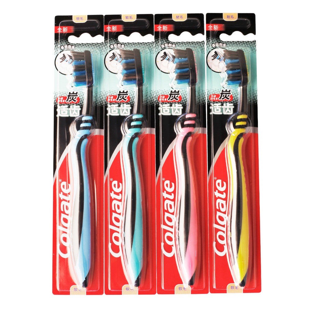 高露洁超洁纤柔牙刷软毛含备长炭家庭套装清洁细毛护龈超洁净